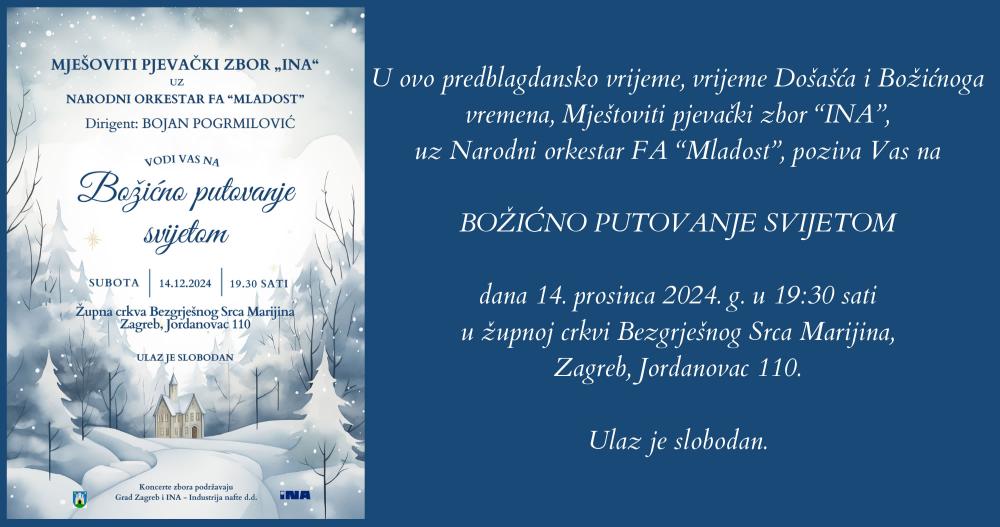 uljepšati koncertom biranih narodnih božićnih pjesama iz Hrvatske, Europe, Južne, Srednje i Sjeverne Amerike.